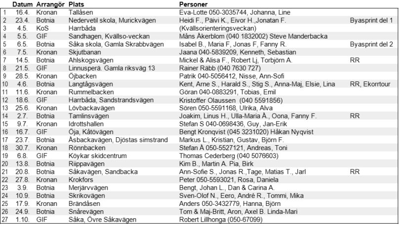 | 26. | 26.9 | GIF | Öja, Bergölandet. Start kl. 16-17. | Robert Lillhonga 05067099 Elin Lillhonga |